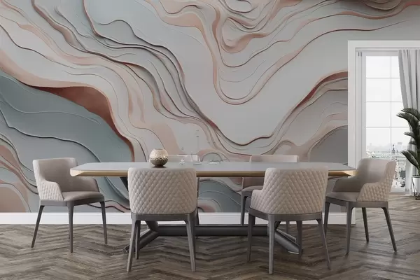 Papier peint couches, vagues, abstraction, rose, gris, formes douces, N° w04255v1