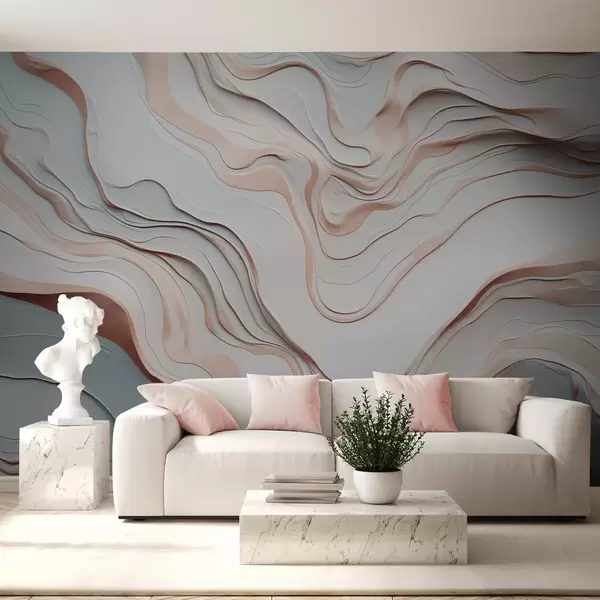 Papier peint couches, vagues, abstraction, rose, gris, formes douces, N° w04255v1