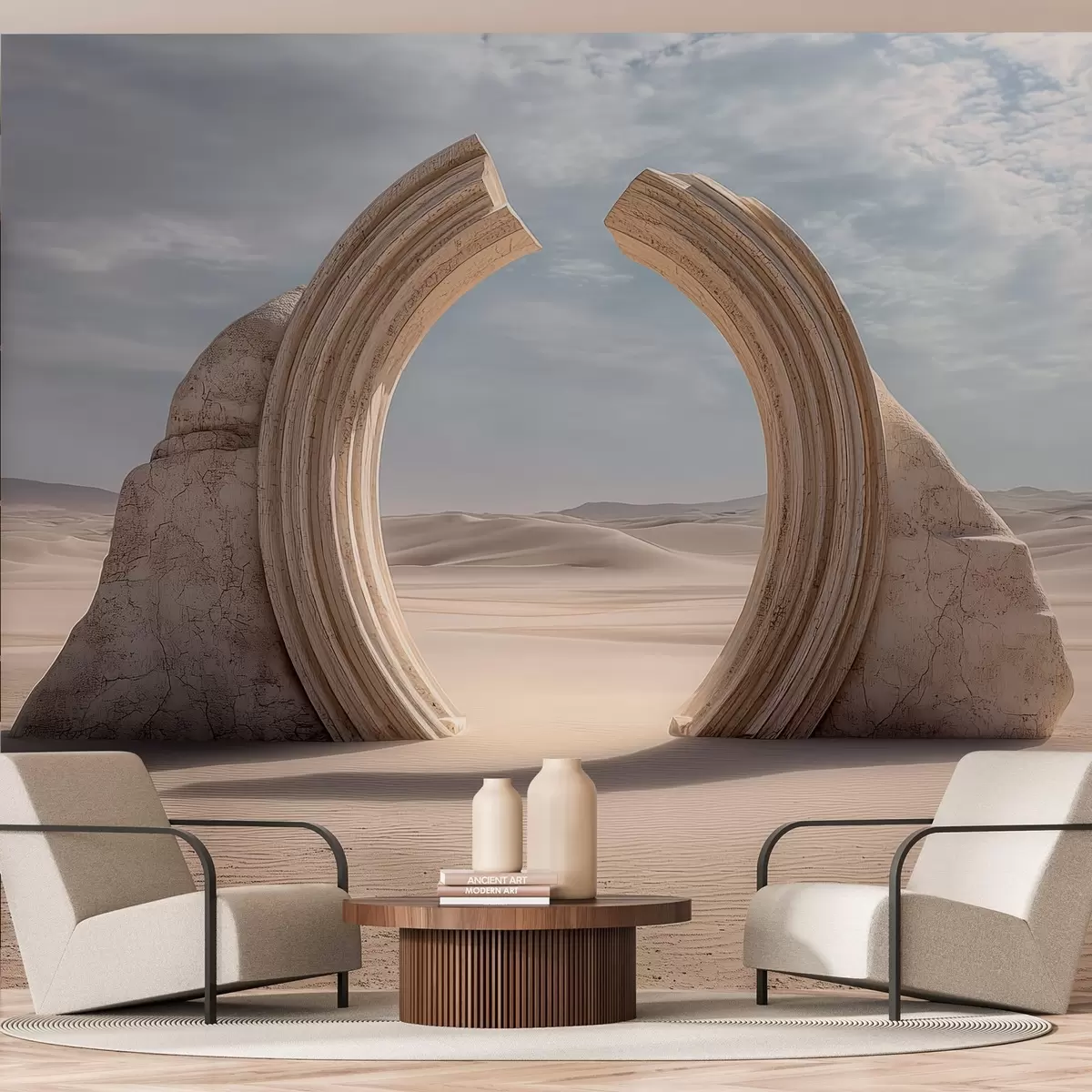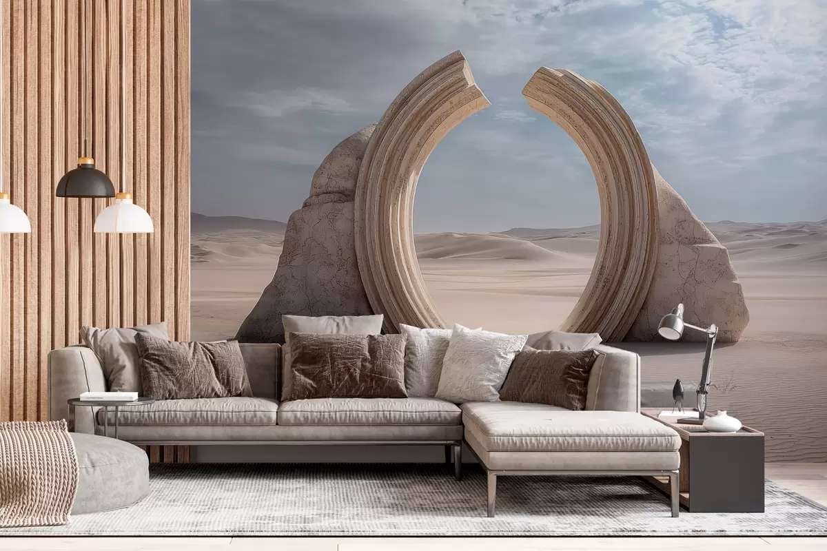 Papier peint paysage désertique surréaliste avec une grande arche architecturale N° w04284