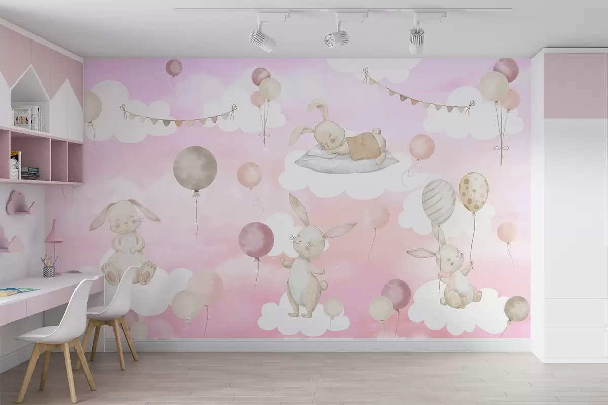 Papier peint Lapins avec des ballons sur des nuages N° w04337v1