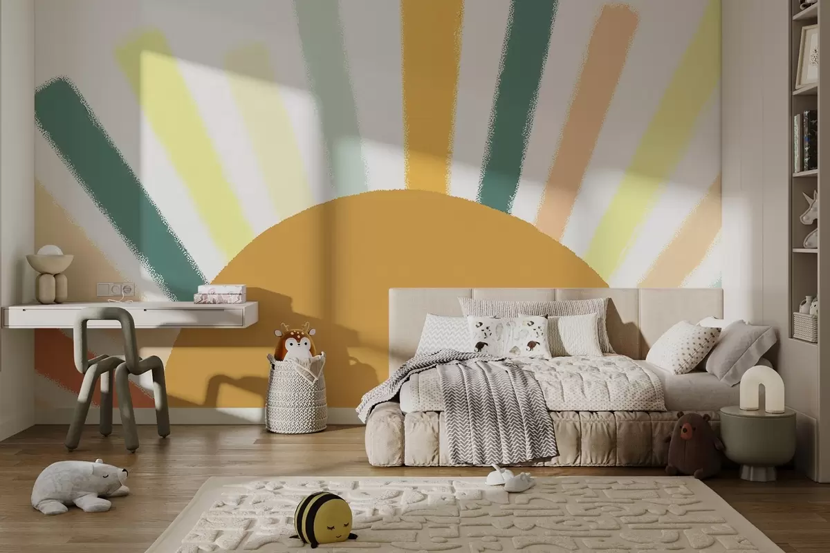Papier peint Soleil abstrait avec rayons colorés N° w04352