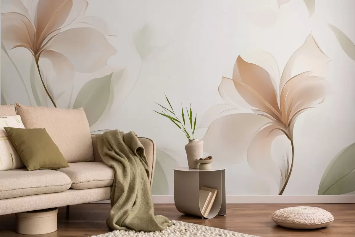 Papier peint Fleurs transparentes dans des tons chauds de beige et de rose N° w04397
