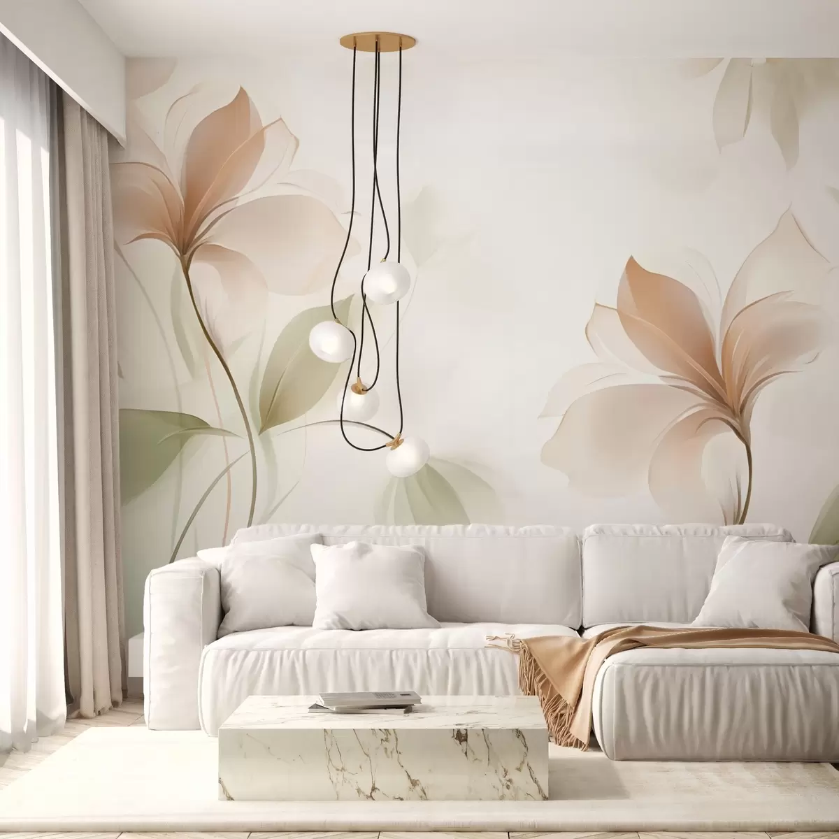 Papier peint Fleurs transparentes dans des tons chauds de beige et de rose N° w04397