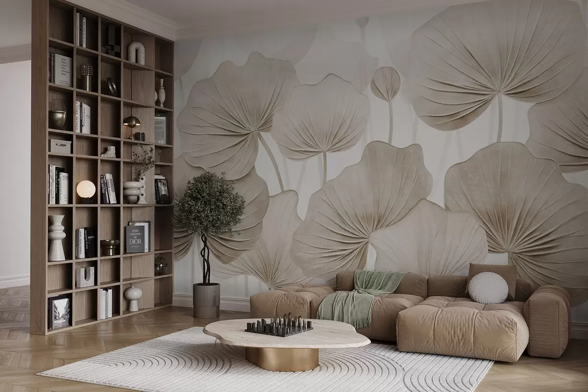 Papier peint Feuilles de lotus avec imitation de texture vieillie N° w04412v1
