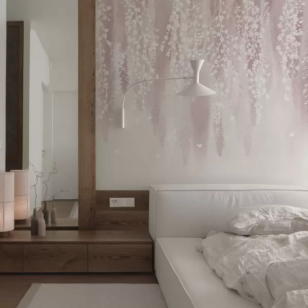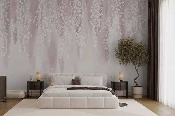 Papier peint Version rose des branches à fleurs blanches N° w04417v1