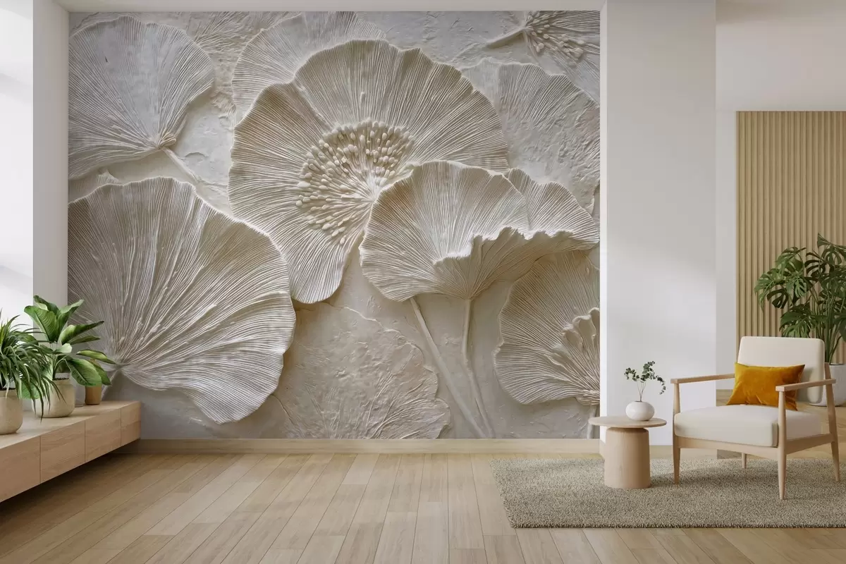 Papier peint Feuilles de ginkgo volumineuses dans un style légèrement gaufré N° w04444