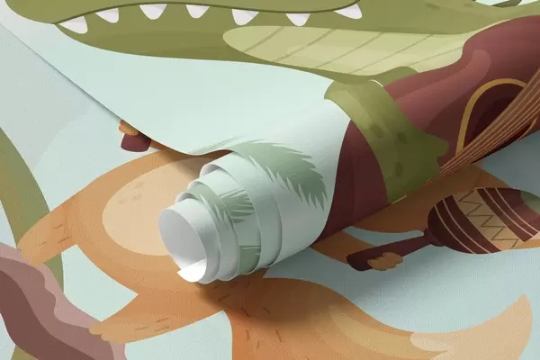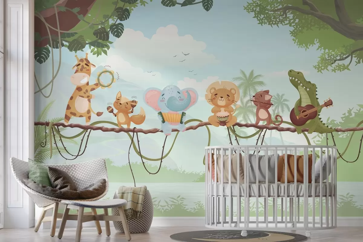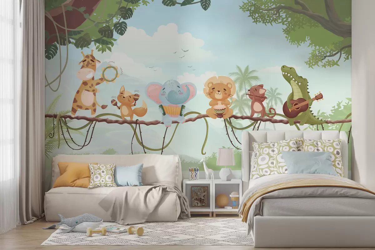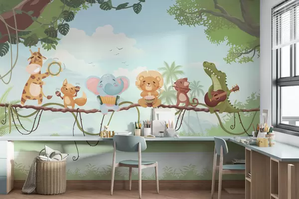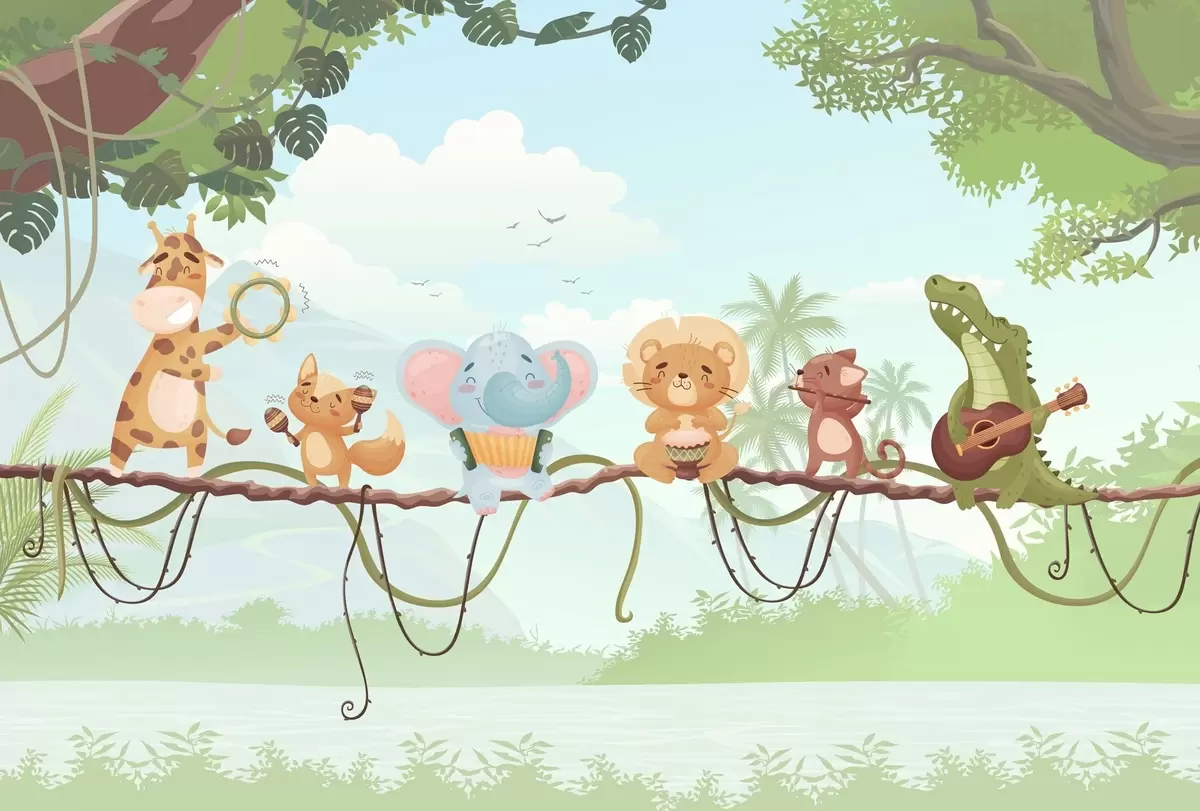 Papier peint Animaux avec des instruments de musique dans un paysage tropical N° w04505