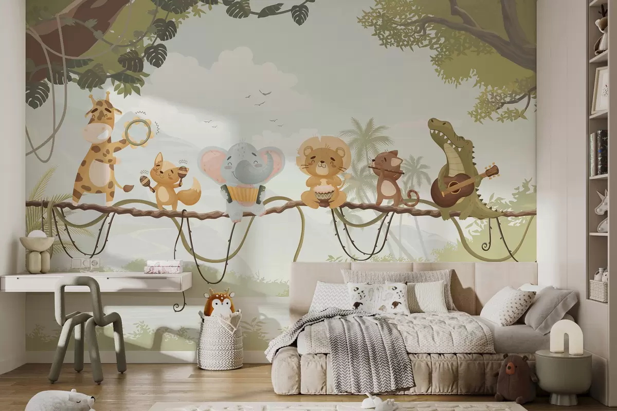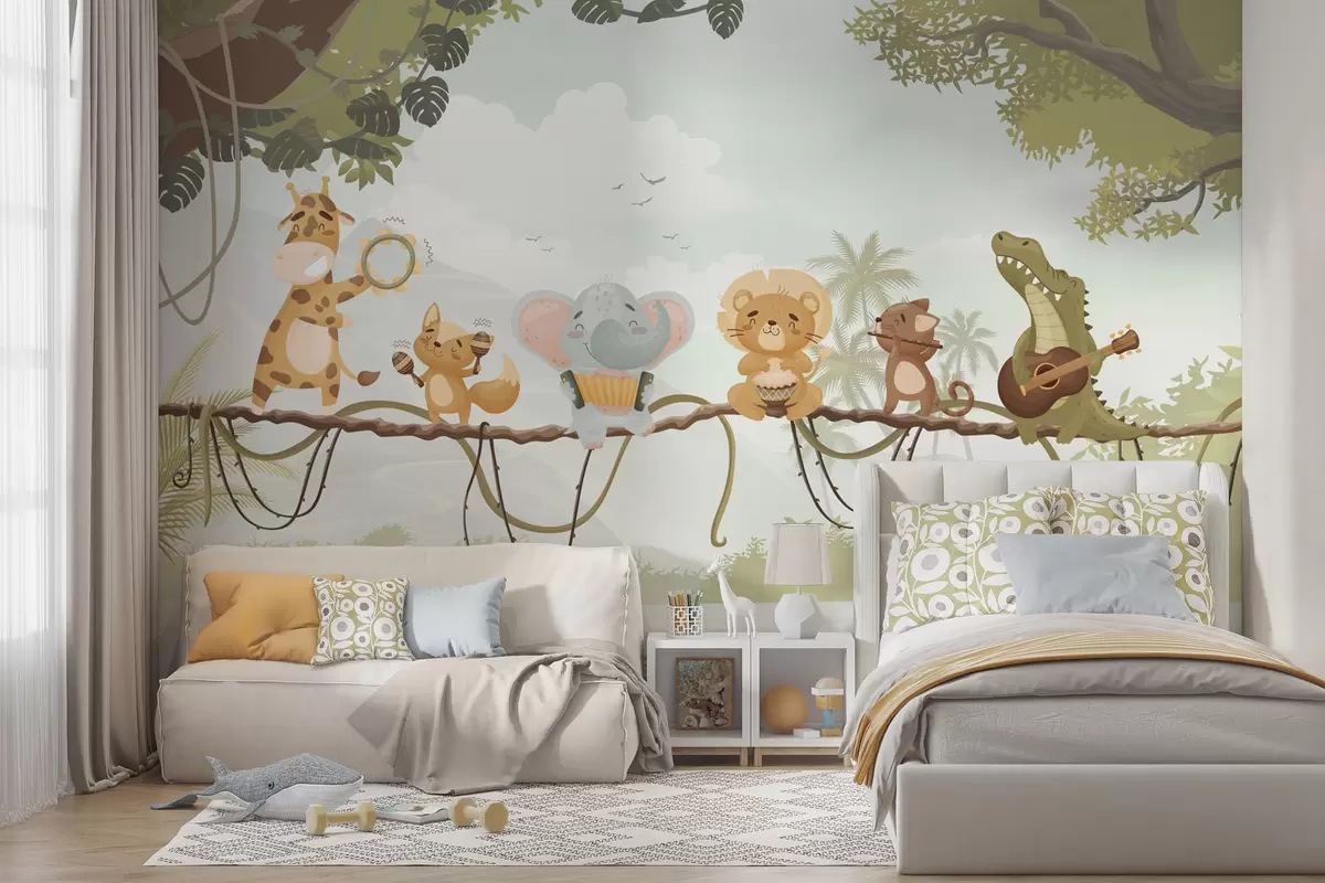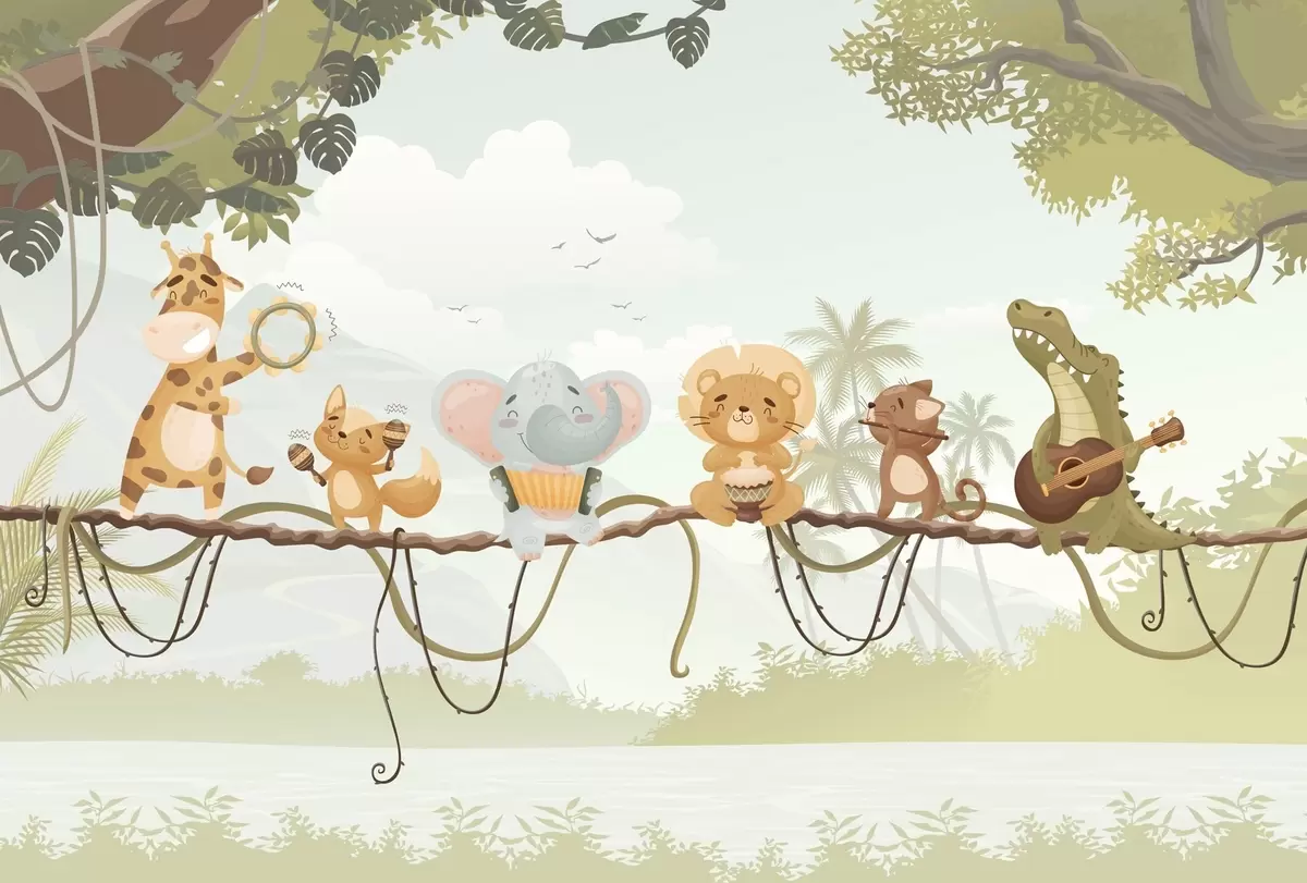 Papier peint Animaux avec des instruments de musique dans un paysage tropical N° w04505v1
