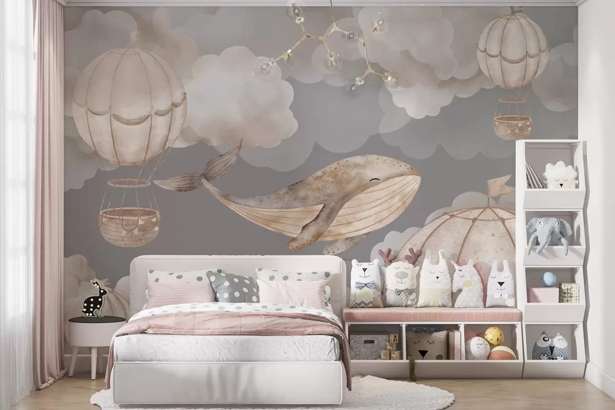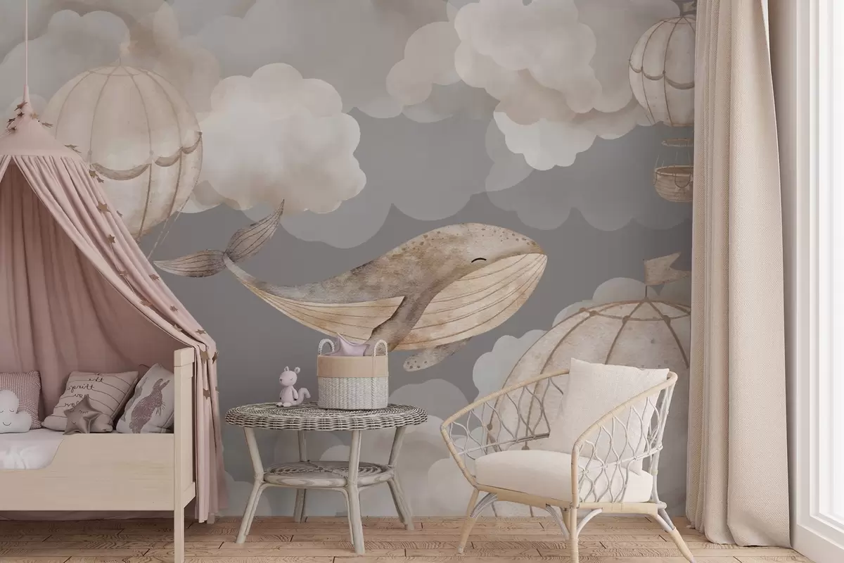 Papier peint Baleines et montgolfières parmi les nuages cotonneux N° w04522