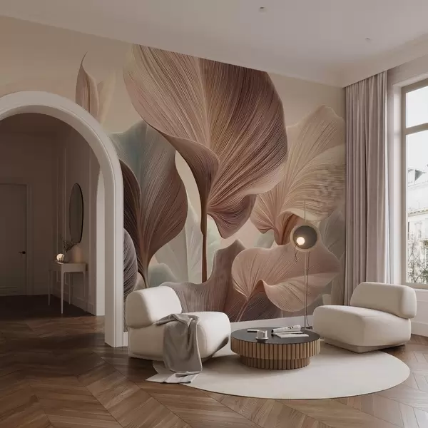 Papier peint Feuilles élégantes dans des tons beiges chauds N° w04549v1