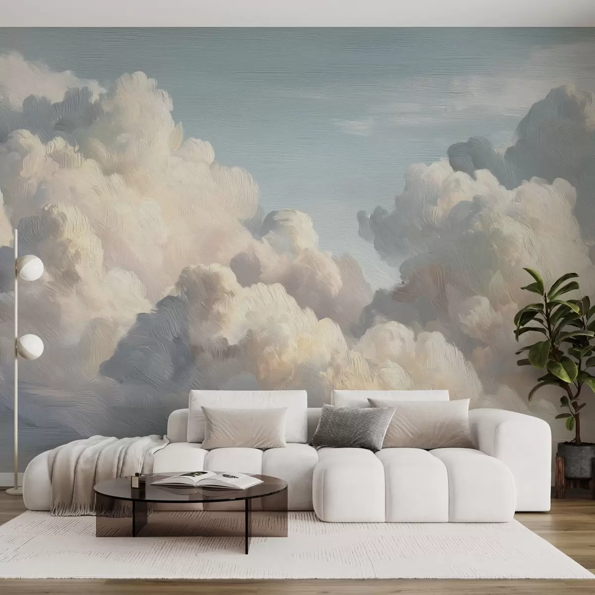 Papier peint Nuages dans un ciel bleu clair avec une texture légère N° w04550v2