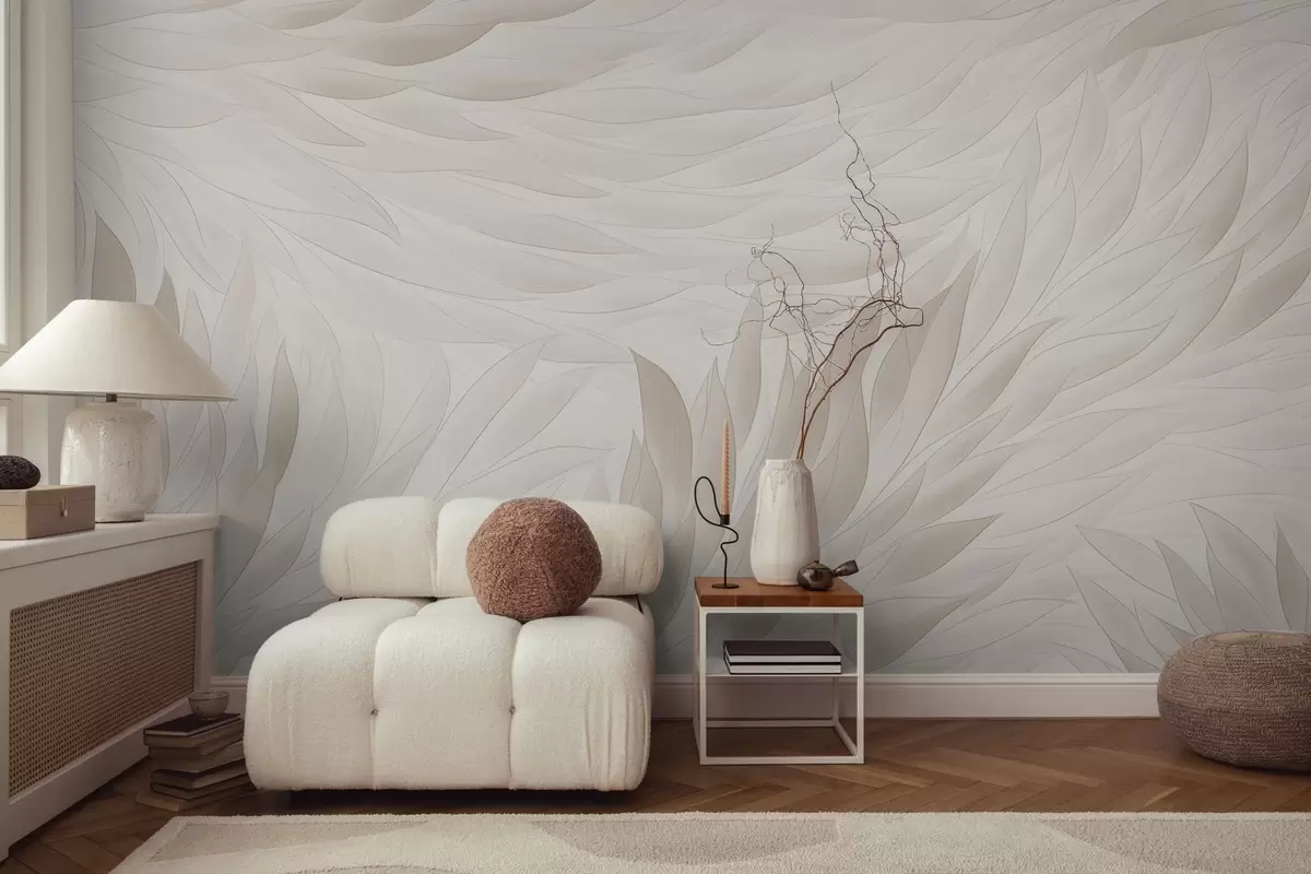 Papier peint Feuilles ondulées dans des tons crème doux N° w04610