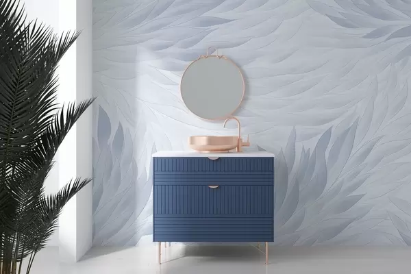 Papier peint Feuilles ondulées dans des tons bleu clair N° w04610v1