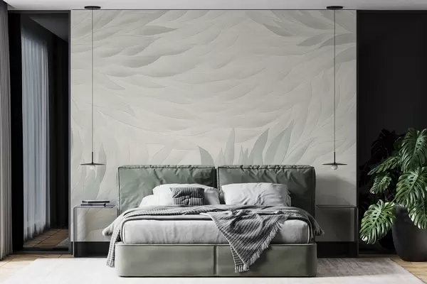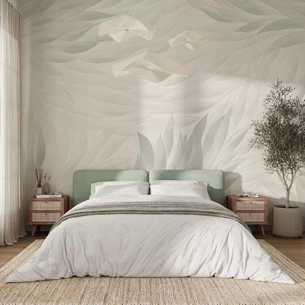 Papier peint Feuilles ondulées aux douces teintes vert-beige N° w04610v2