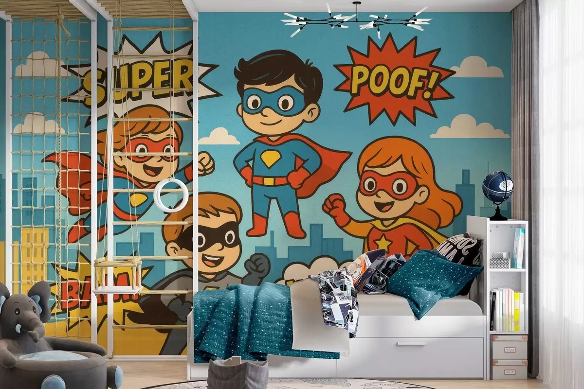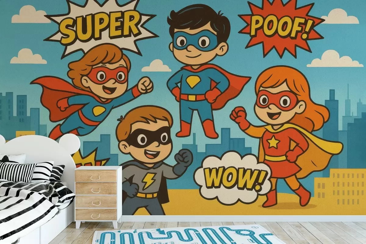 Papier peint super-héros drôles dans le style bande dessinée N° w04625