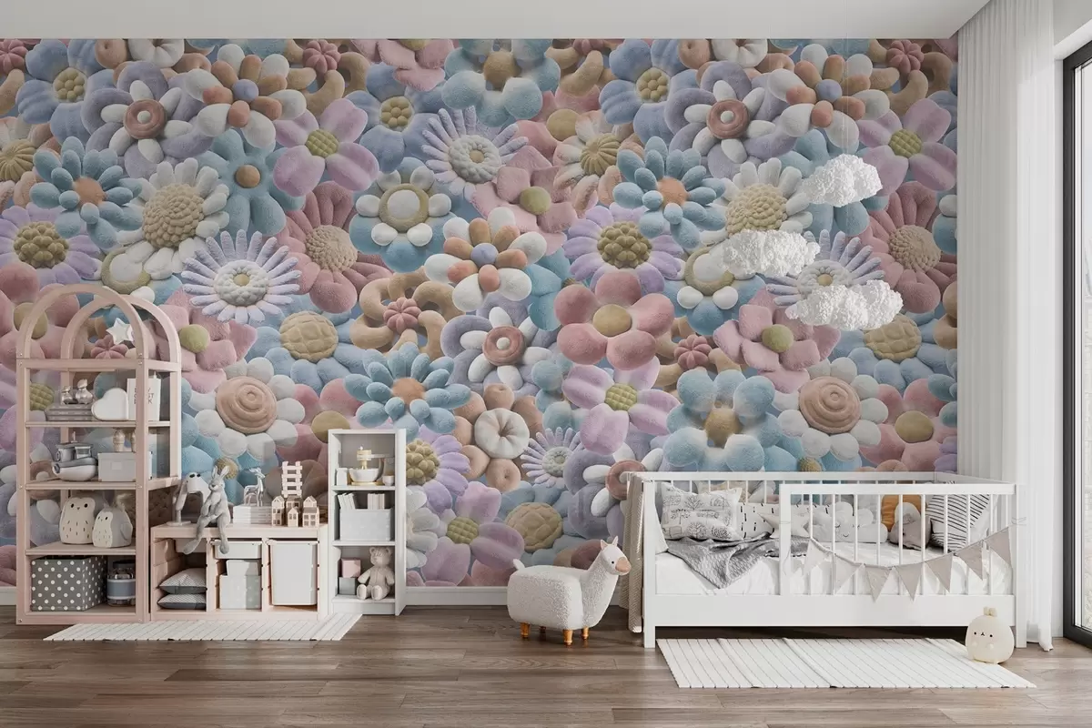 Papier peint fleurs duveteuses aux couleurs pastel N° w04626v1