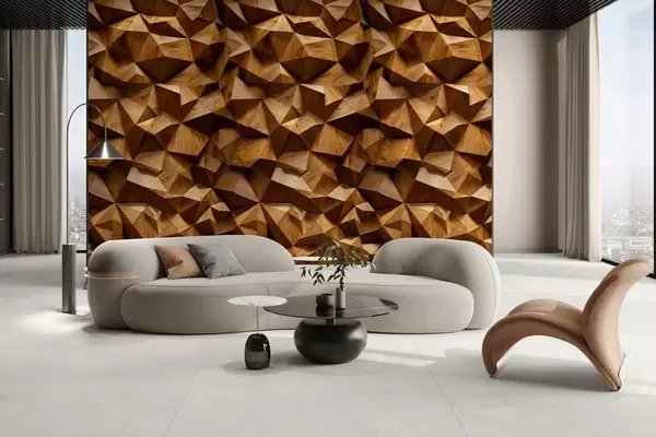 Papier peint imitation d'un mur en relief angulaire en bois N° w04632