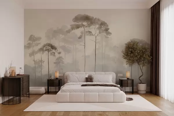 Papier peint silhouettes légères de pins dans un style aquarelle N° w04634