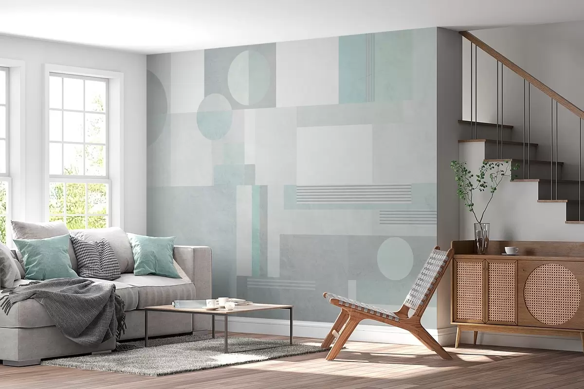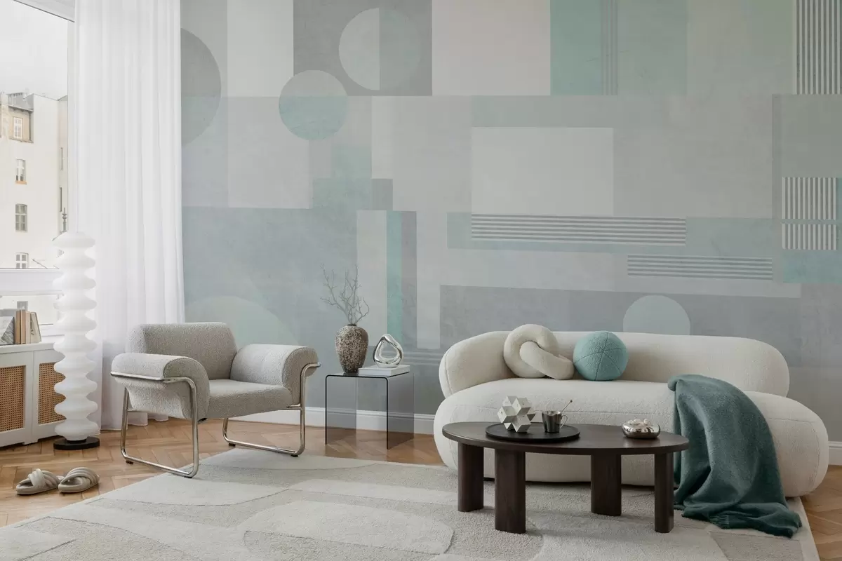 Papier peint géométrie abstraite dans des tons gris-vert N° w04635v3
