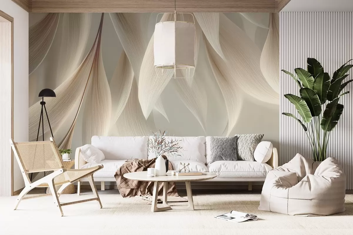 Papier peint Feuilles suspendues aux contours stylisés N° w04706