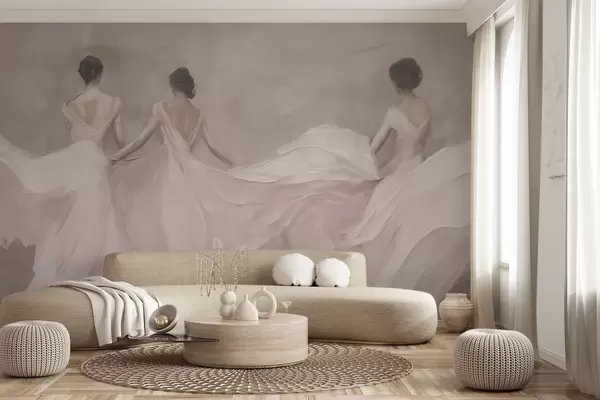 Papier peint Trois femmes en robes roses, tissu fluide, douceur N° w04709