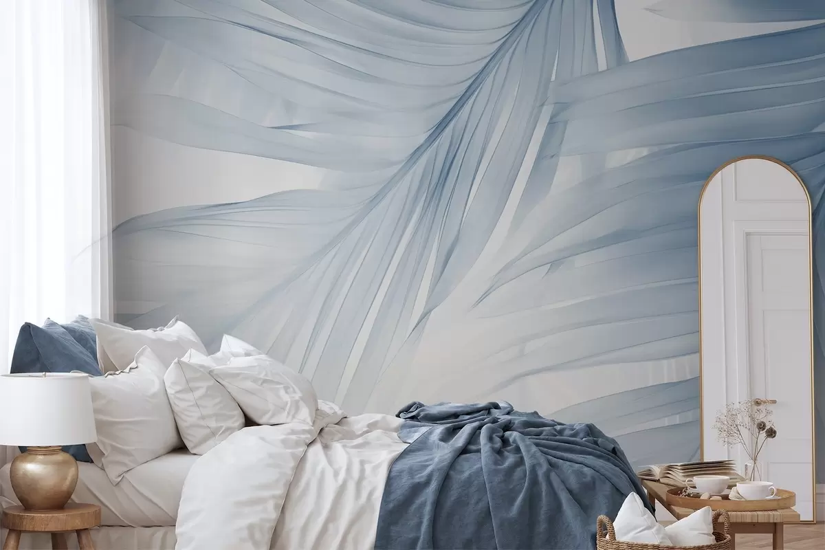Papier peint Feuilles de fougère dans les tons bleus N° w04727v1