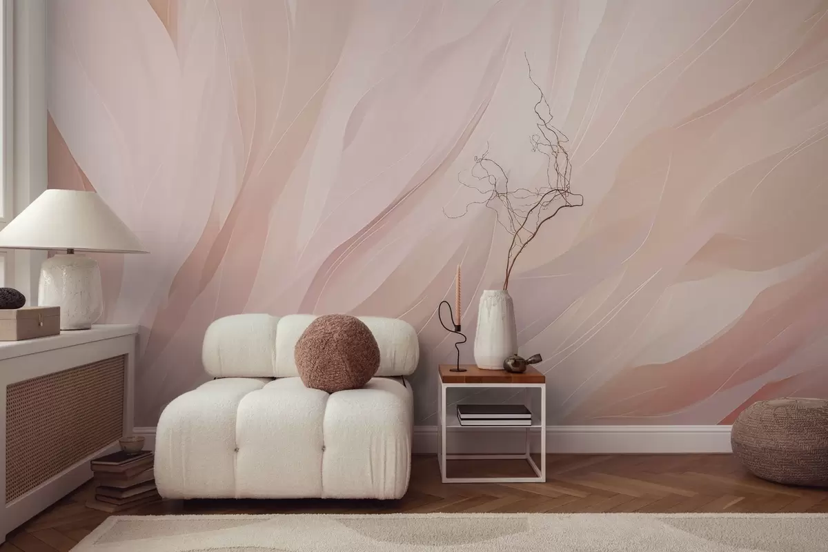 Papier peint Touches abstraites douces dans des tons pastel rose et pêche N° w04731