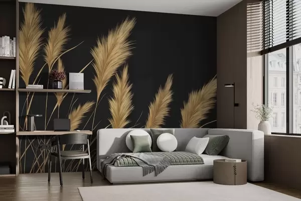 Papier peint Épis de blé duveteux sur fond sombre N° w04734