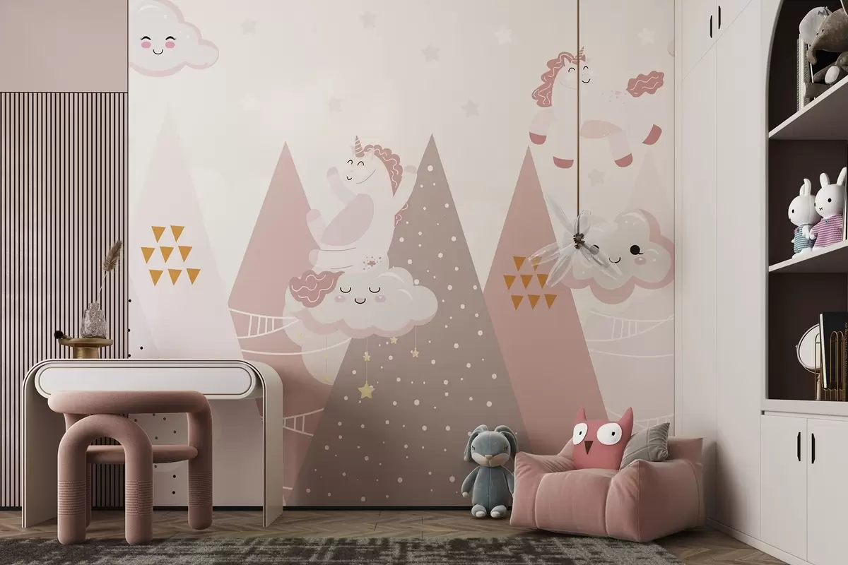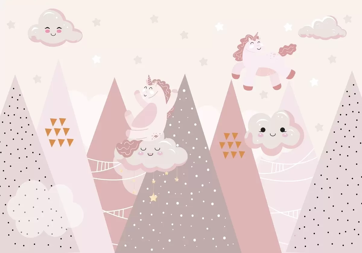 Papier peint Poney dans les montagnes avec des nuages N° w04741