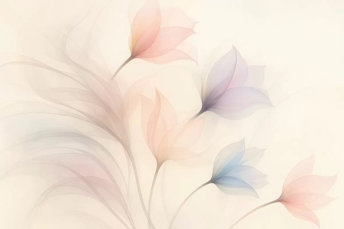 Papier peint tulipes délicates semi-transparentes sur fond beige N° w04754