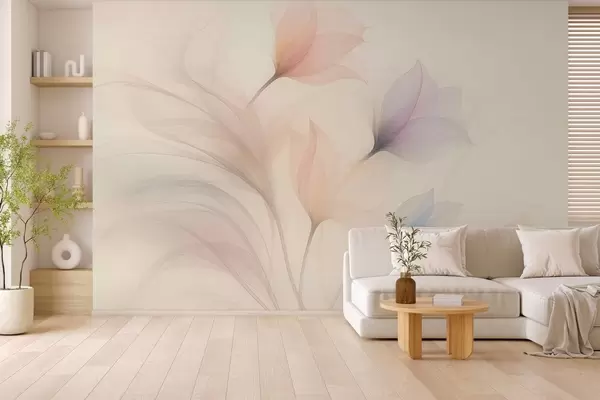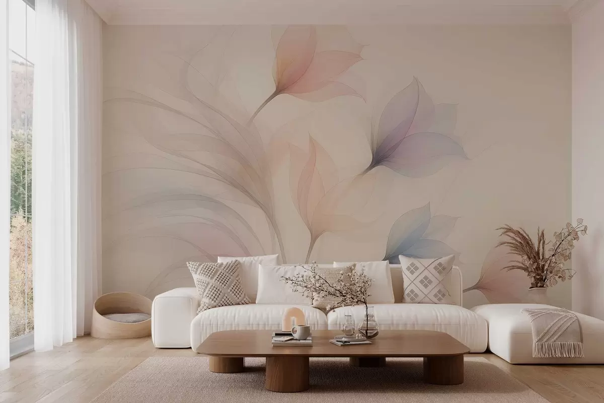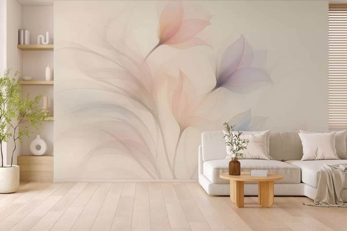 Papier peint tulipes délicates semi-transparentes sur fond beige N° w04754