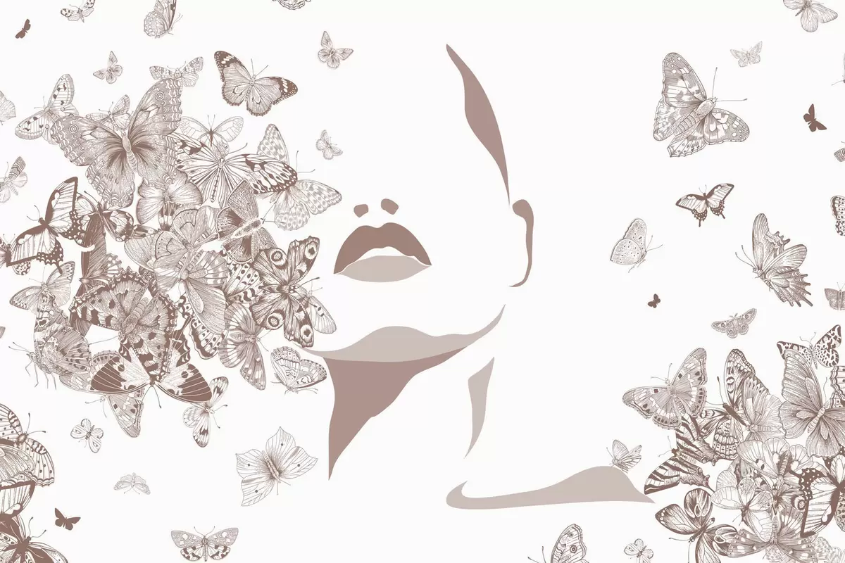 Papier peint Silhouette d'un visage parmi les papillons N° w04778