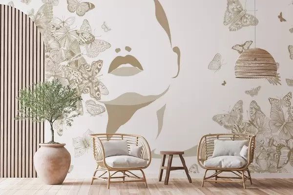 Papier peint Silhouette d'un visage parmi les papillons N° w04778v2