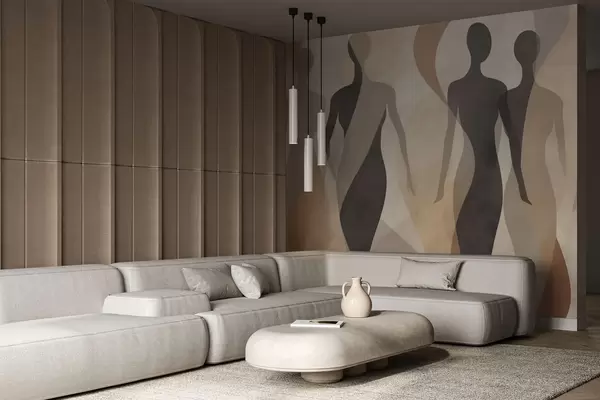 Papier peint Silhouettes et vagues douces dans des tons chauds beige-gris N° w04787