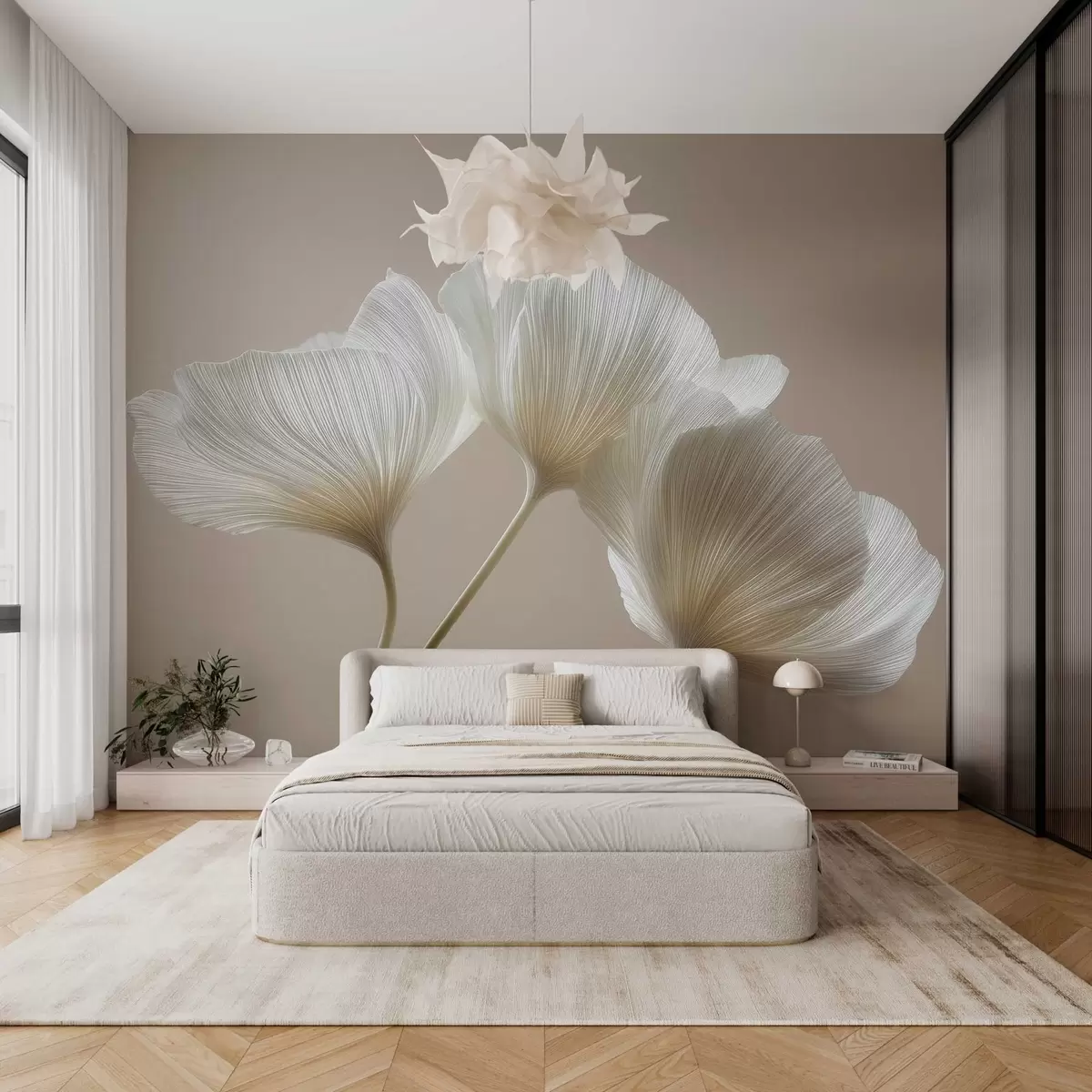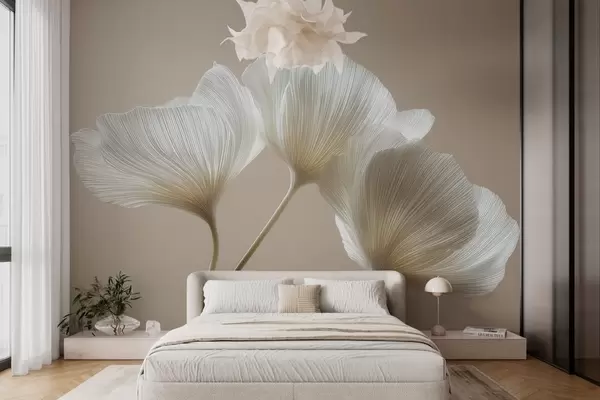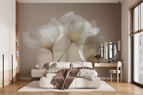 Papier peint trois fleurs délicates sur fond beige N° w04810
