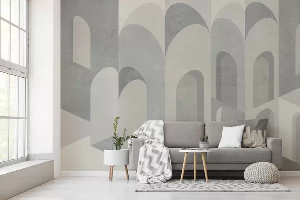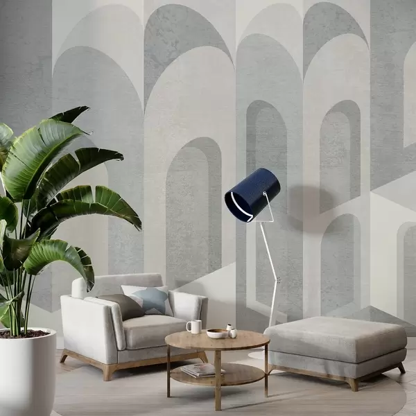 Papier peint métamorphoses urbaines de l'arche dans des tons gris et beige froid N° w04812v1