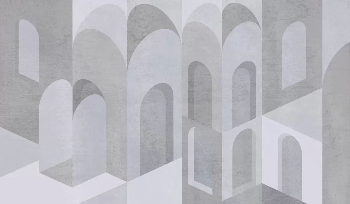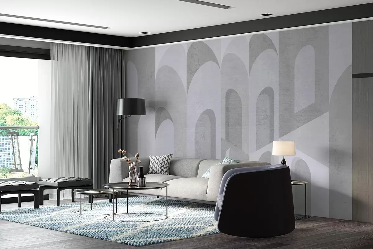 Papier peint métamorphoses urbaines de l'arche dans des tons gris et bleus N° w04812v2