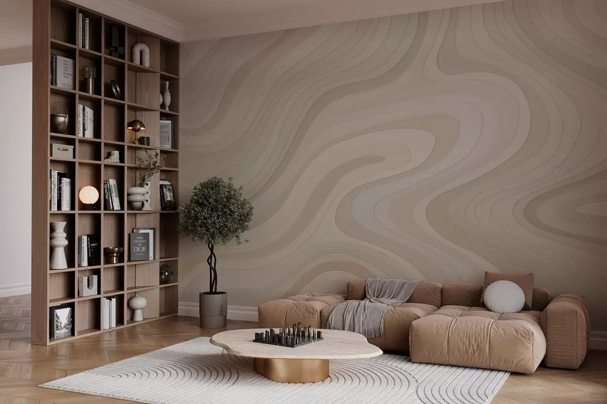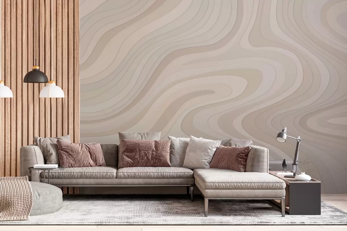Papier peint vagues abstraites dans des tons poudrés N° w04813