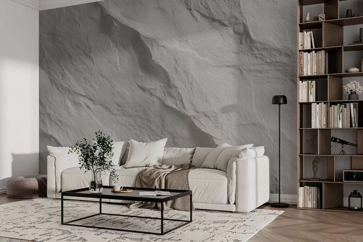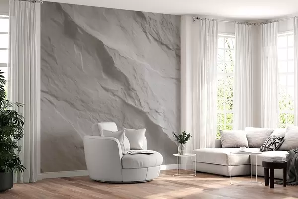 Papier peint imitation de roche blanche dans la décoration intérieure N° w04818