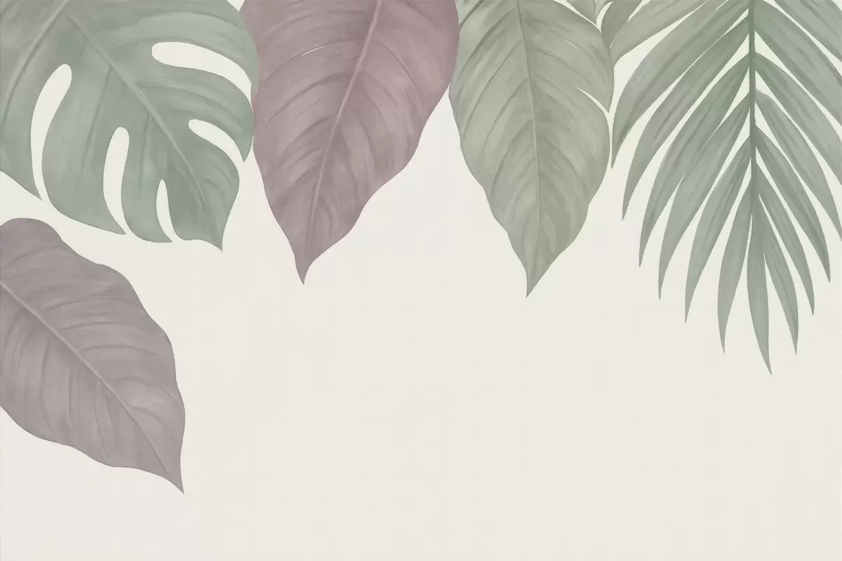 Papier peint grandes feuilles tropicales dans un style simple, vues d'en haut N° w04819