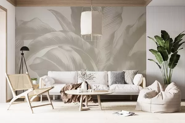 Papier peint Longues feuilles, feuilles de bananier avec un effet usé N° w04827