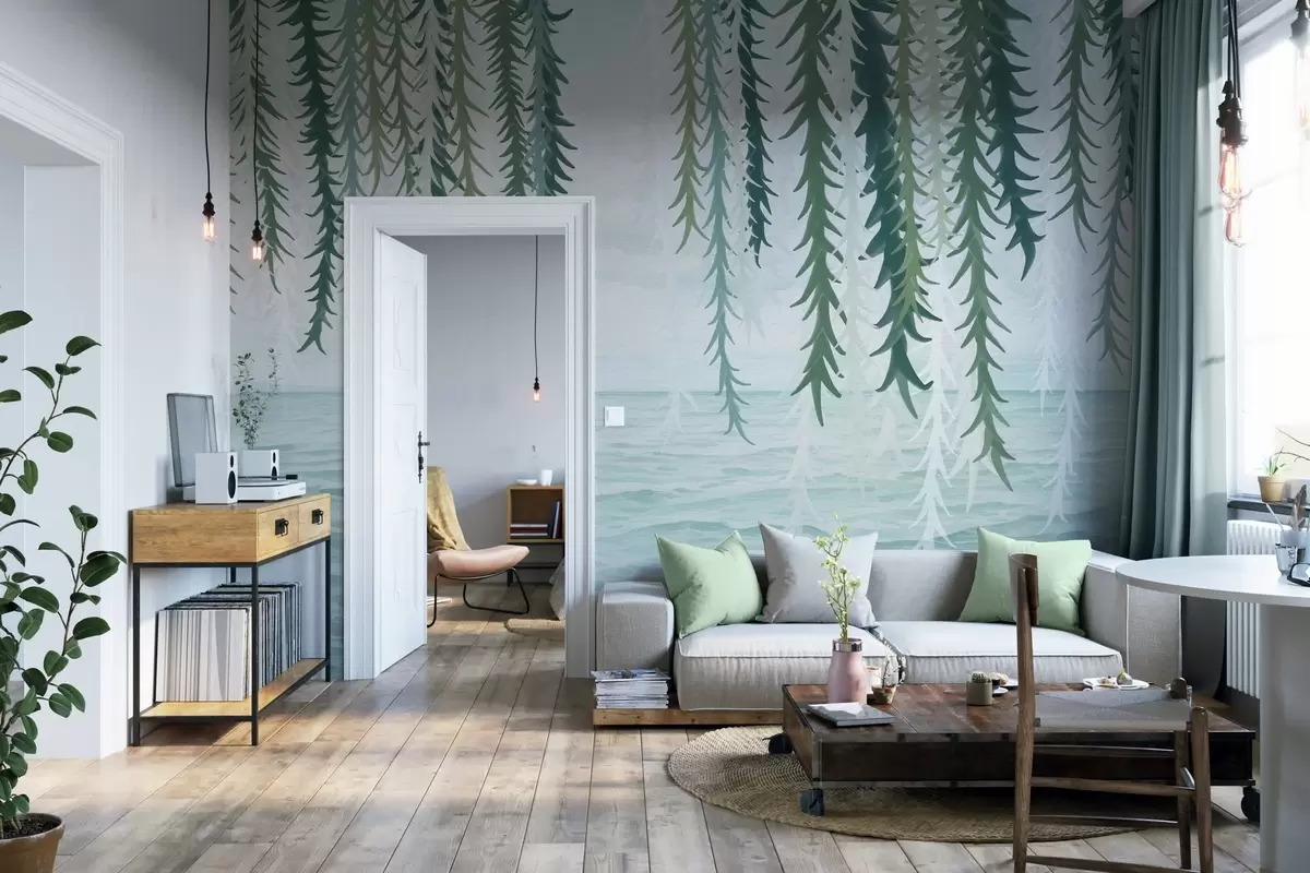 Papier peint Vignes délicates suspendues au-dessus de l'eau, style aquarelle N° w04830