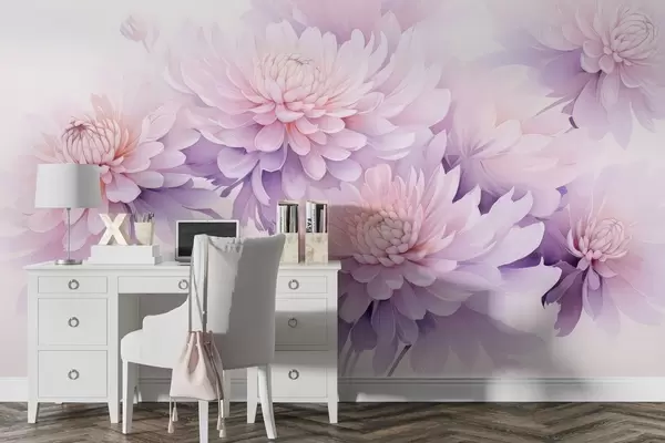 Papier peint Chrysanthèmes aquarellés luxuriants sur fond clair N° w04832
