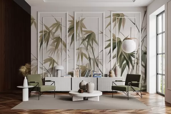 Papier peint Bambou sur fond aquarelle clair N° w04834v1