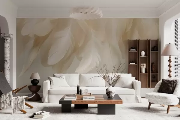 Papier peint Plumes suspendues luxuriantes et délicates dans des tons apaisants N° w04842