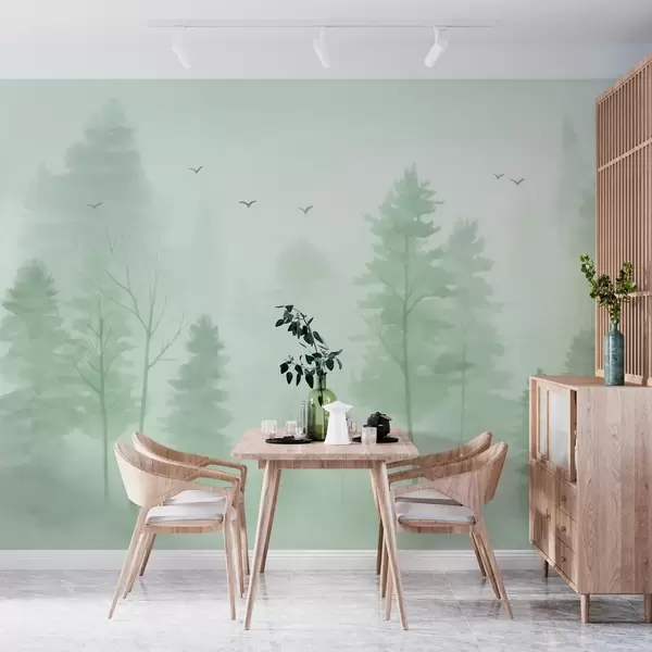 Papier peint forêt aérienne dans les tons verts, style aquarelle N° w04872v1