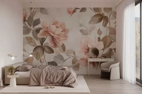 Papier peint roses pittoresques dans le style de la peinture à l'huile N° w04873