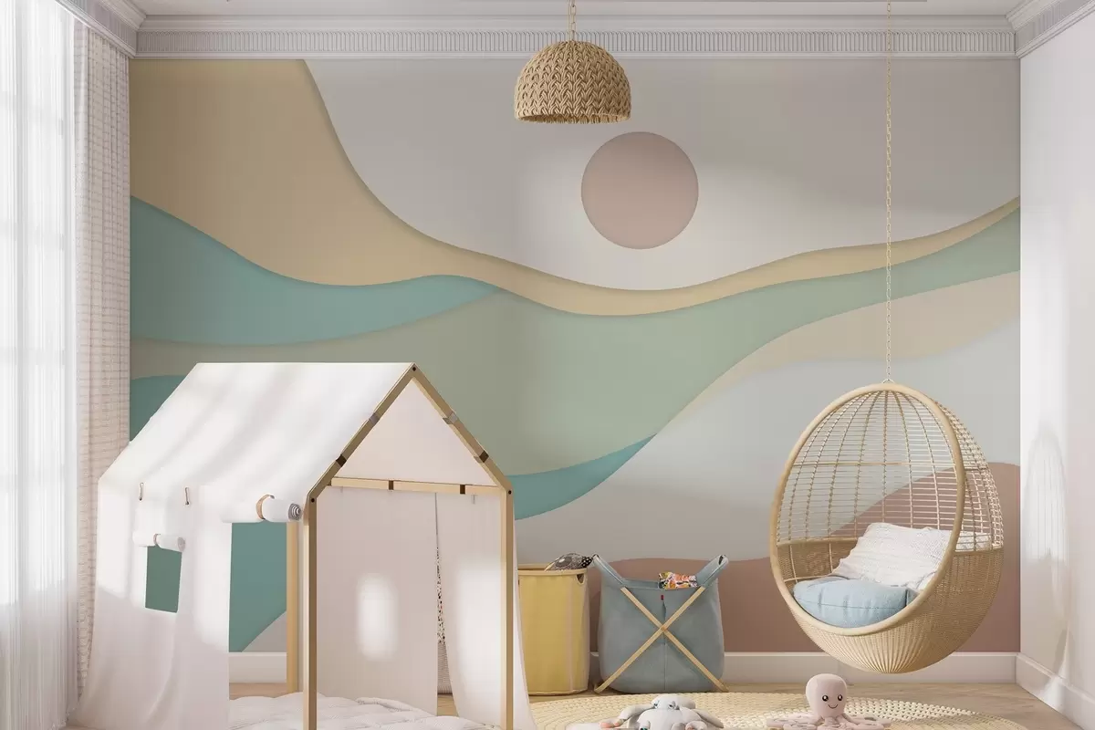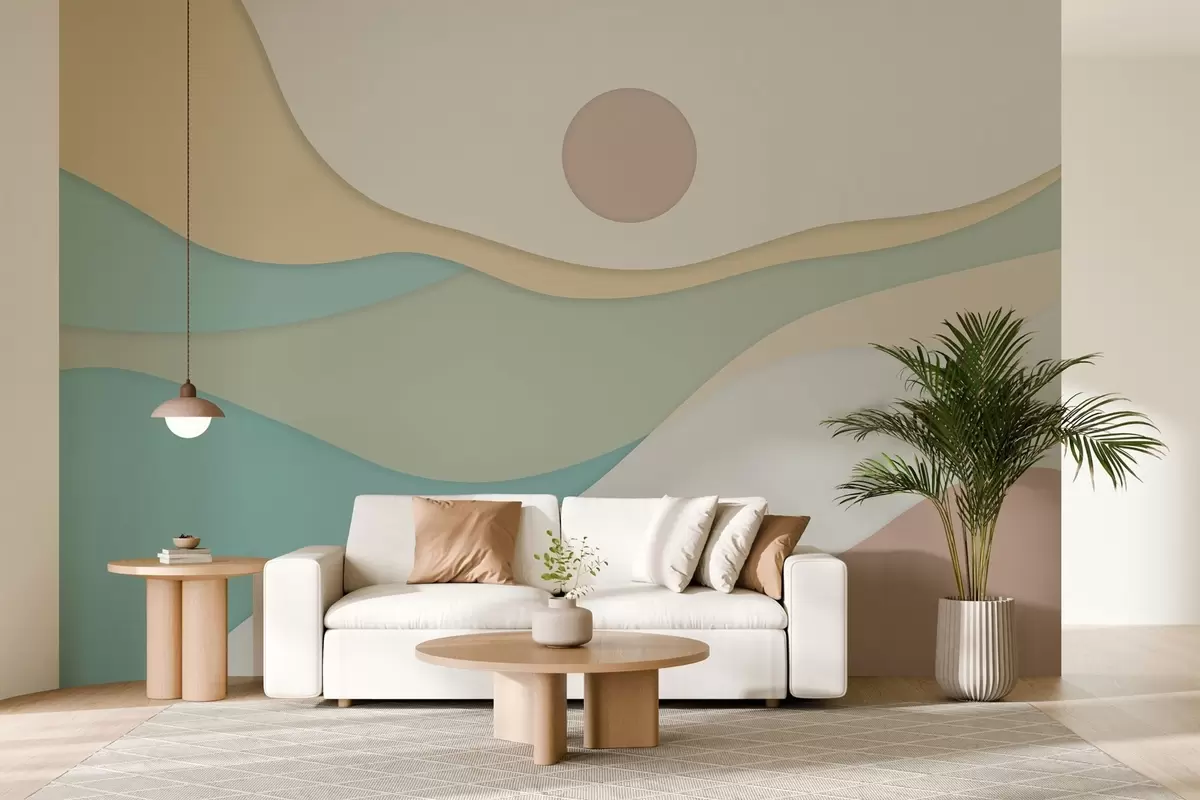 Papier peint Abstraction minimaliste aux formes douces et ondulées qui rappellent les paysages fluides et les dunes. N° w04874