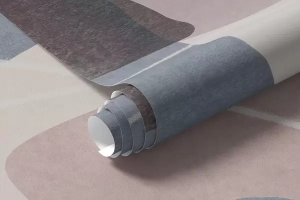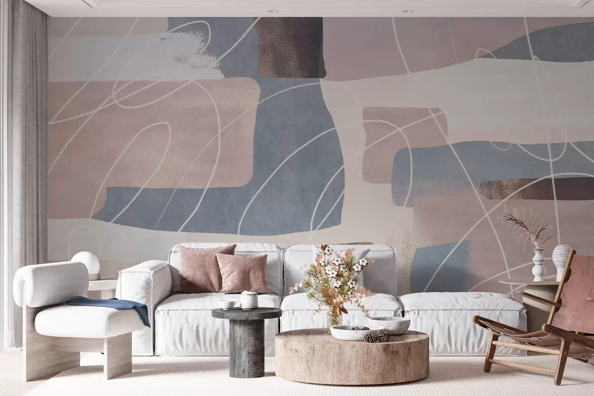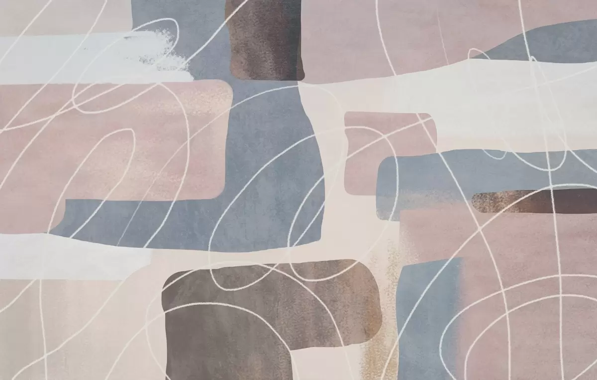 Papier peint abstraction moderne dans des tons rose poudré, gris-bleu, beige et marron N° w04877