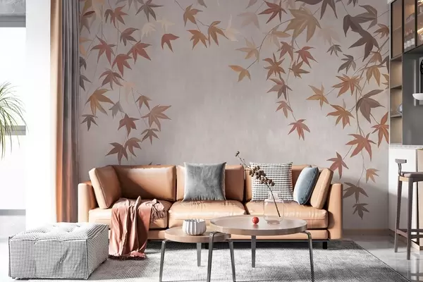 Papier peint feuilles de lierre multicolores tombant du ciel dans le style d'une peinture à l'huile N° w04878
